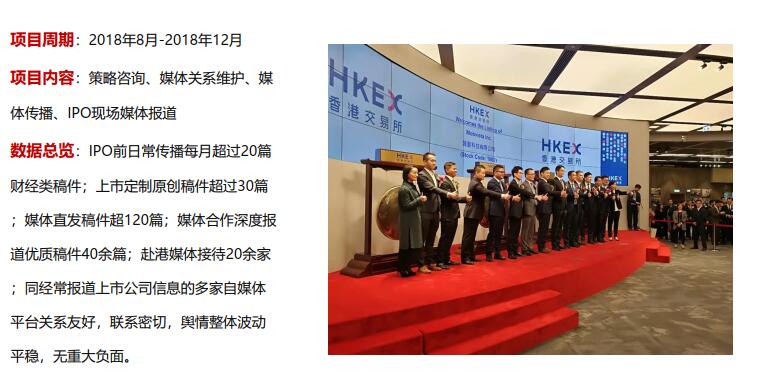 曾為上百家大中型企業及世界五百強客戶提供價值服務。業務涵蓋全球新聞媒體發布、新媒體代理、自媒體平臺運營、事件營銷策劃、活動搭建、媒體邀請、企業培訓、視頻制作、視頻直播、危機公關及上市公司IPO財關等。